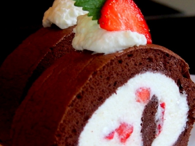 Žloutky oddělíme od bílků.Žloutky vyšleháme do pěny s cukrem a přidáme kakao.Bílky vyleháme do tuha a přimícháme do žloutků.Troubu vyhřejeme na 200°C a těsto rozmažeme na pečící papír .Pečeme asi 10 minut.Horkou srolujeme a necháme vychladnout.Smetanu vyšleháme do tuha s cukrem a ztužovačem.Na vystydlou roládu namažeme smetanu a posypeme pokrájenými jahodami.Smotáme a necháme vychladit.