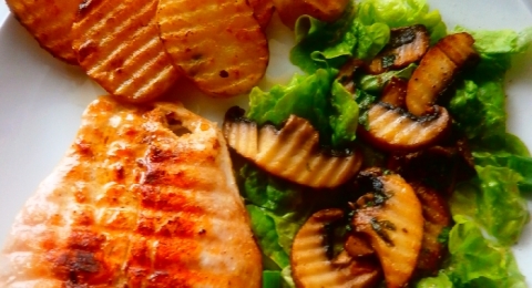 Portobello nakrájíme na širší plátky, rozpálíme pánev, dáme olivový olej, kousek másla, kmín, majoránku, sůl a restujeme asi 5 minut. Nakonec posypeme petrželí.